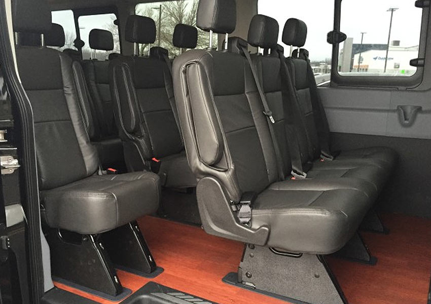Features: Comfortable passenger seating, overhead reading lights, easy access door, plenty of luggage storage, climate control heating/air system, powerpoint for operating mobile equipment and charging phones.